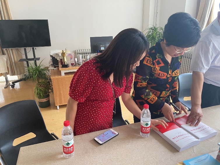 广西外院周江煜书记、邓丽艳部长在翻阅学生成果集