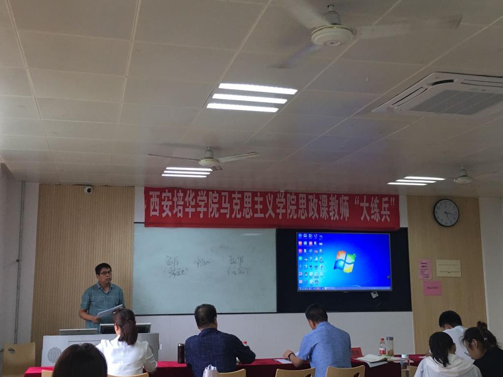 为了深入学习贯彻习近平总书记关于教育的重要论述特别是在学校思想政治理论课教师座谈会上的重要讲话精神,认真落实中办国办《关于深化新时代学校思想政治理论课改革创新的若干意见》,根据《中共陕西省委教育工委 陕西省教育厅关于进一步深化陕西学校思政课教师“大练兵”主题活动的通知》文件要求,加强高素质创新性思政课教师队伍建设,深化思政课质量改革,2020年7月22日,我校马克思主义学院举办2020年思政课教师“大练兵”现场展示活动。