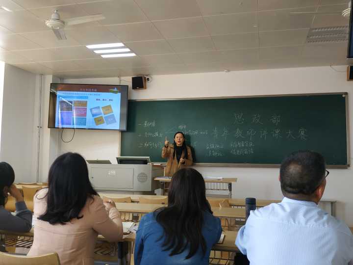 为提升青年教师创新型教学能力和教学水平,推进青年教师不断改进教学方式和手段,激发青年教师快速进行应用型课程教学改革的主动性、积极性和创造性,思政部于5月10日举行了我校第十届青年教师教学竞赛初赛。担任本次比赛的评委有思政部主任史晓眉教授、思政部副主任王袁媛副教授、思政部冯小卫教授和思政部教研室主任霍艾湘副教授、简爱副教授、袁秦英副教授、潘迎丽副教授。