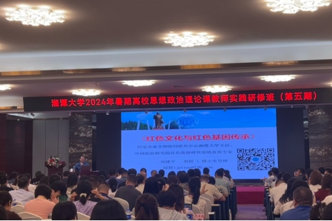 7月24日上午,湘潭大学马克思主义学院党委书记张佑祥主持开班仪式。湘潭大学党委副书记肖志伟致欢迎辞。开班仪式结束后,湘潭大学刘建平教授为全体研修人员作了题为《红色文化与红色基因传承》的主题报告。刘教授从红色文化的基本内涵及特点、红色文化在大学生思想政治教育中的特殊作用、红色文化在大学生思想政治教育中的利用现状、红色文化与大学生红色基因传承、习近平重视红色基因教育、湖南红色文化资源概况、红色文化与湘籍革命家理想信念、红色文化在大学生思想政治教育的传承创新等八个方面展开详细的阐述。