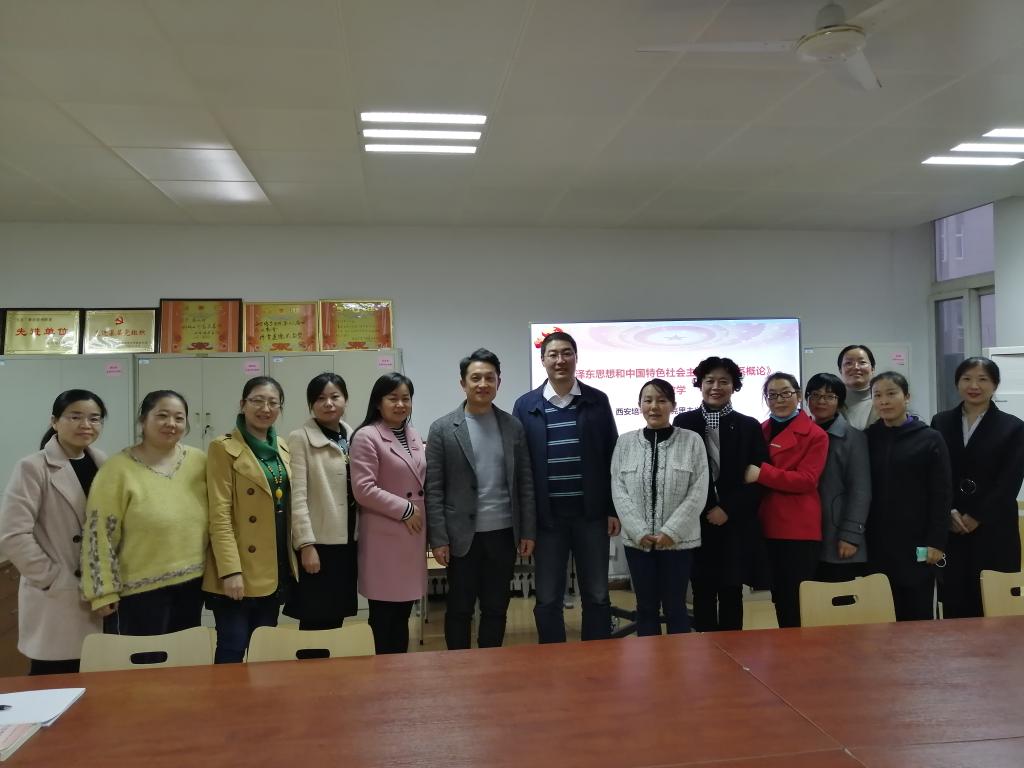 为了促进西安培华学院思政课教学质量上台阶,11月13日下午,西安培华学院马克思主义学院特邀西安电子科技大学马克思主义学院毛泽东思想和中国特色社会主义理论体系概论教研室主任、陕西高校思政课教师大练兵标兵赵常兴副教授来校进行《习近平新时代中国特色社会主义思想及其历史地位》示范教学。讲座在马克思主义学院会议室1310-C进行,毛中特教研室主任霍艾湘老师主持,马院院长史晓眉教授参会,毛泽东思想和中国特色社会主义理论体系概论授课教师参加。