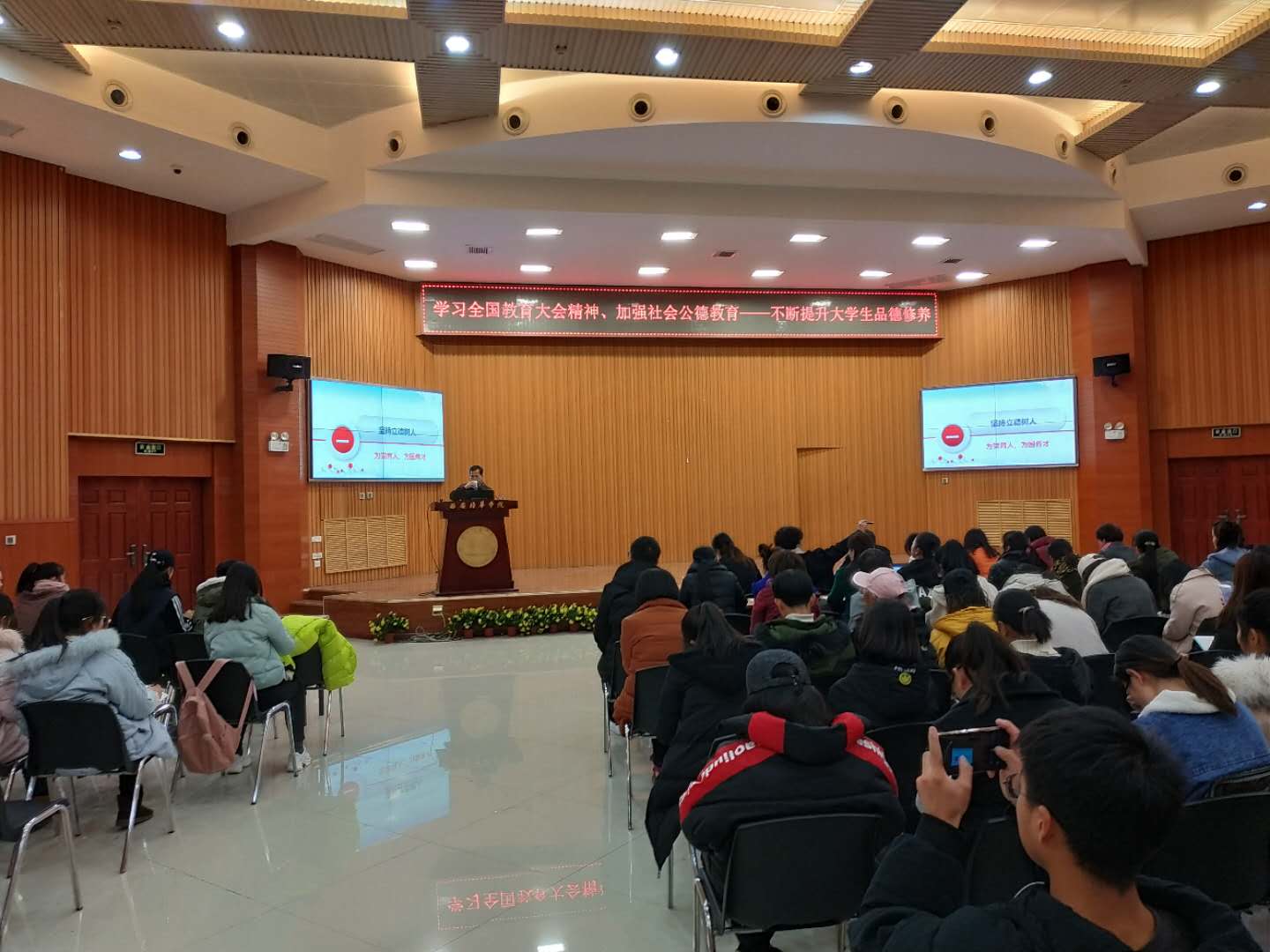 为了学习贯彻落实全国教育大会精神,推进习近平新时代中国特色社会主义思想进教材、进课堂、进学生头脑工作,12月5日下午,我校特邀“全国教育大会精神”专题示范巡讲教师、西安理工大学鲁宽民教授在明德楼四楼会议室作主题讲座,我校思政部主任史晓眉教授出席了此次活动,思政部副主任王袁媛主持会议。全体思政课教师以及学生一同聆听讲座。
