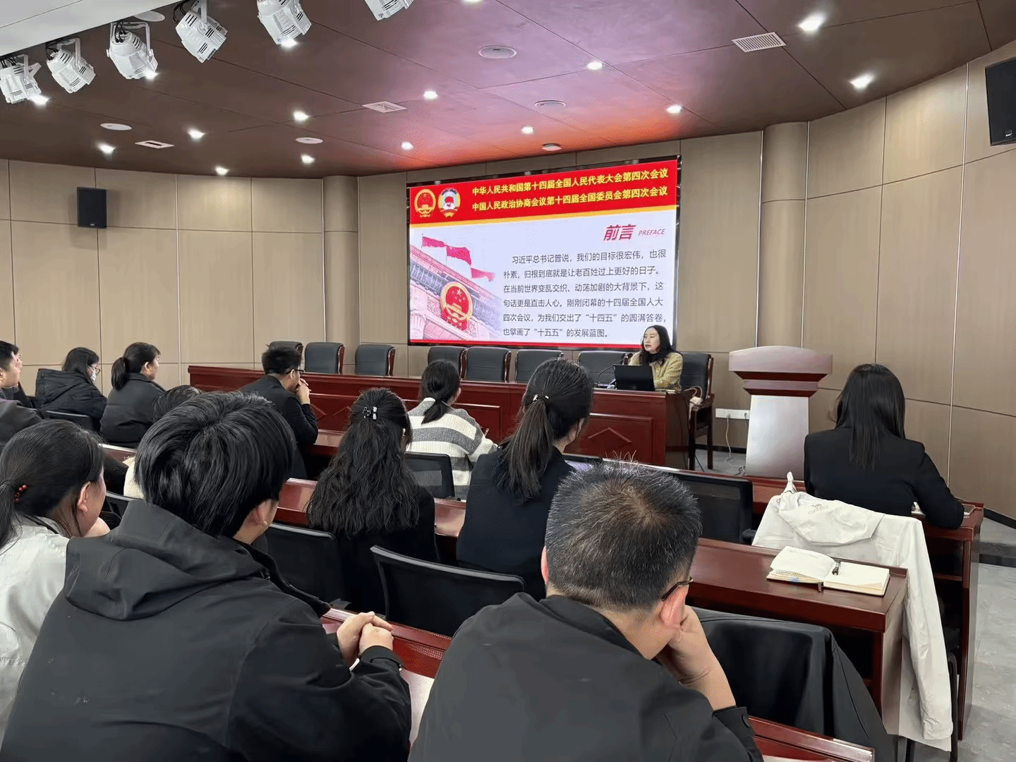 为深入学习宣传贯彻2026年全国两会精神,推动党的创新理论走进基层、深入人心,切实把两会部署转化为基层治理实效。2026年3月26日,西安培华学院马克思主义学院副教授、马克思主义学院“红旗颂”理论宣讲团成员李雯,走进郭杜街道樱花路社区,以“以‘两会’精神为指引,做基层‘稳日子’的践行者与守护者”为主题,开展专题理论宣讲。郭杜街道常欣街社区、任家寨社区、里杜村党支部的党员干部、基层党员参加本次活动。