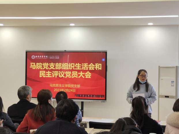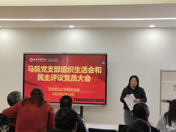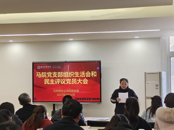 为深入学习贯彻党的二十大精神,全面贯彻习近平新时代中国特色社会主义思想,马克思主义学院于2023年2月24日下午,召开了组织生活会和民主评议党员大会,本次会议由党支部书记寇军强主持,大会有两项议程。