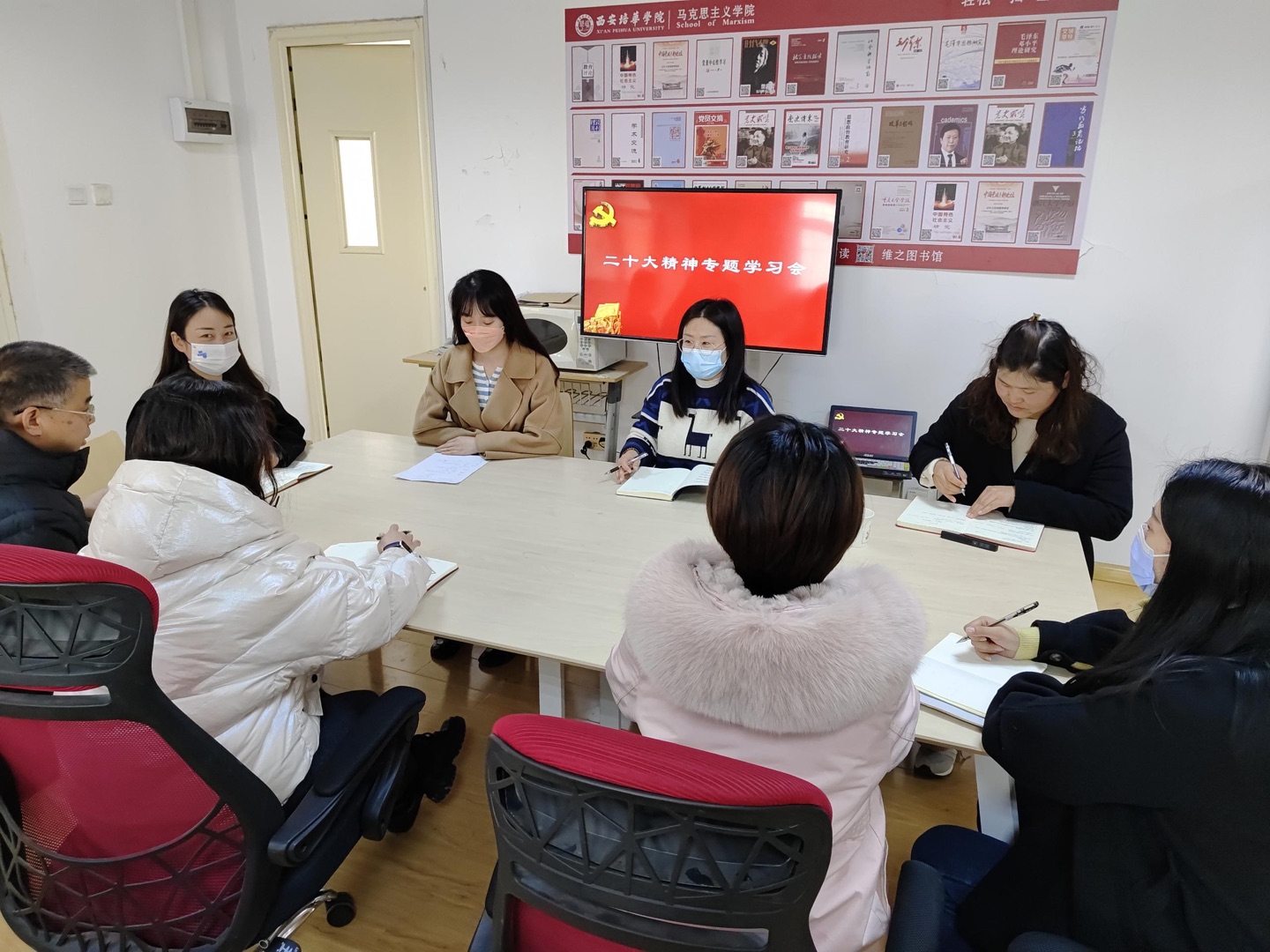 为了进一步学习贯彻党的二十大精神,2023年2月24日上午,《思想道德与法治》教研室在博远楼2401-A开展党的二十大精神专题学习会。德法教研室主任沈永真、冯小卫、陈欢等多位党员教师参加此次会议。