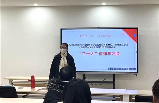 为认真贯彻落实党的二十大精神,探讨党的二十大精神如何融入所带课程,2023年2月20日马克思主义学院马原理教研室在2501B会议室召开了《马原理》教研室精神学习会。会议由刘娟老师主持,《马原理》教研室全体党员参加了会议。