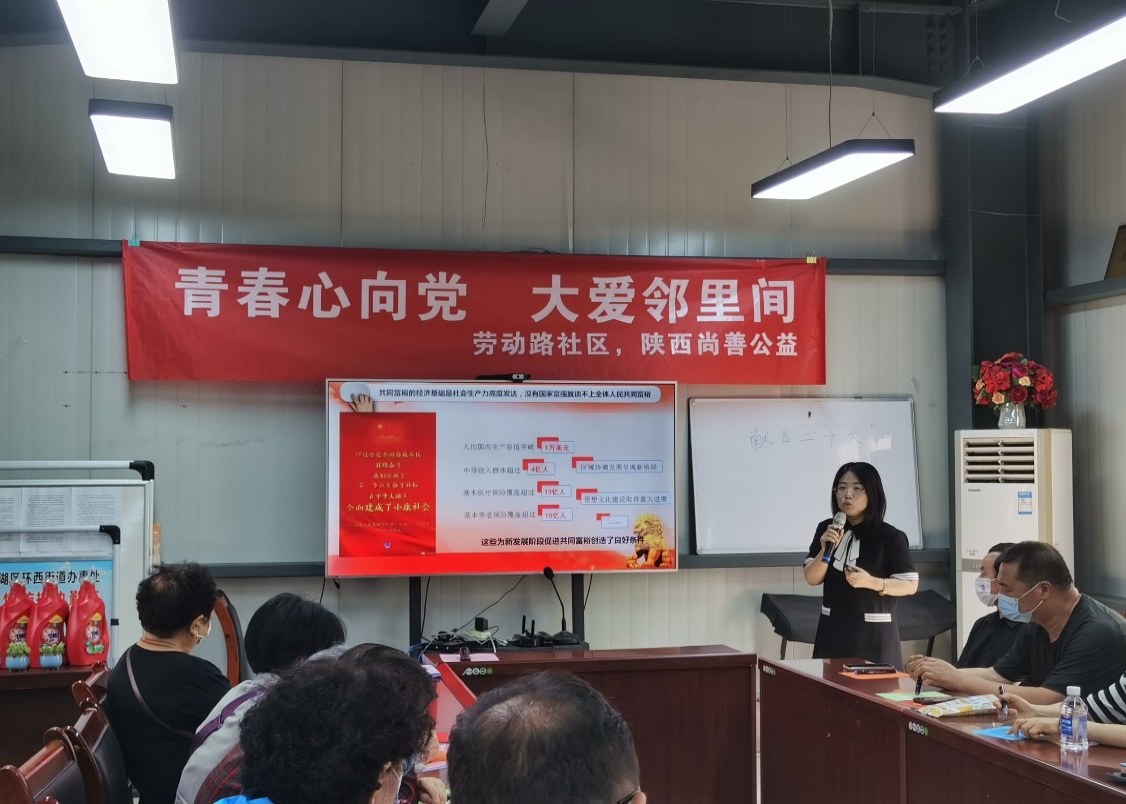 沈永真副教授为社区退休党员、居民代表作了《不断推进全体人民共同富裕》专题报告。她主要从共同富裕的科学内涵、共同富裕的实践途径、共同富裕的未来征程三个方面进行讲述,指出扎实推进共同富裕,是我们党带领全国人民全面建设社会主义现代化国家的现实需要和初心使然。