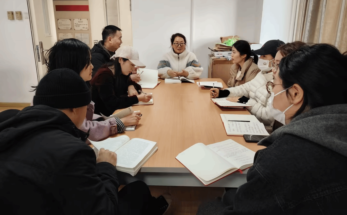 会议伊始,杨志梅主任强调,思政课是铸魂育人的关键课程,教学准备工作直接关系课堂教学质量。随后,教研室对全体教师的新学期教案进行集中检查,重点核查教学目标是否明确、教学内容是否贴合党的最新理论成果、教学方法是否创新多样、案例素材是否鲜活贴切。检查发现,教师们均已完成新学期全部课程教案撰写,内容涵盖 “中国式现代化”“改革攻坚” 等核心主题,融入 “中国智造”“乡村振兴” 等实践案例,部分教案还设计了情景互动、小组讨论等特色环节,整体准备充分、质量达标。