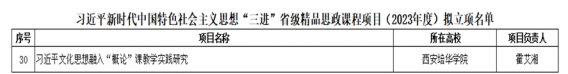 五、霍艾湘教授获得中共陕西省委教育工委关于开展习近平新时代中国特色社会主义思想“三进”省级精品思政课程立项