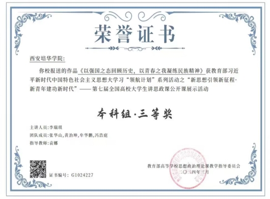 六、袁娜指导的作品在第七届全国高校大学生讲思政课公开课展示活动中荣获三等奖。
