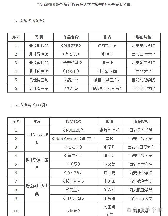 本次大赛各专业积极参赛,广播电视编导专业范瑞婵老师指导学生许振鹤作品《0:38》进入TOP18强并获大赛“最佳导演”入围奖,这也是本次大赛陕西民办高校获得的为数不多的奖项。