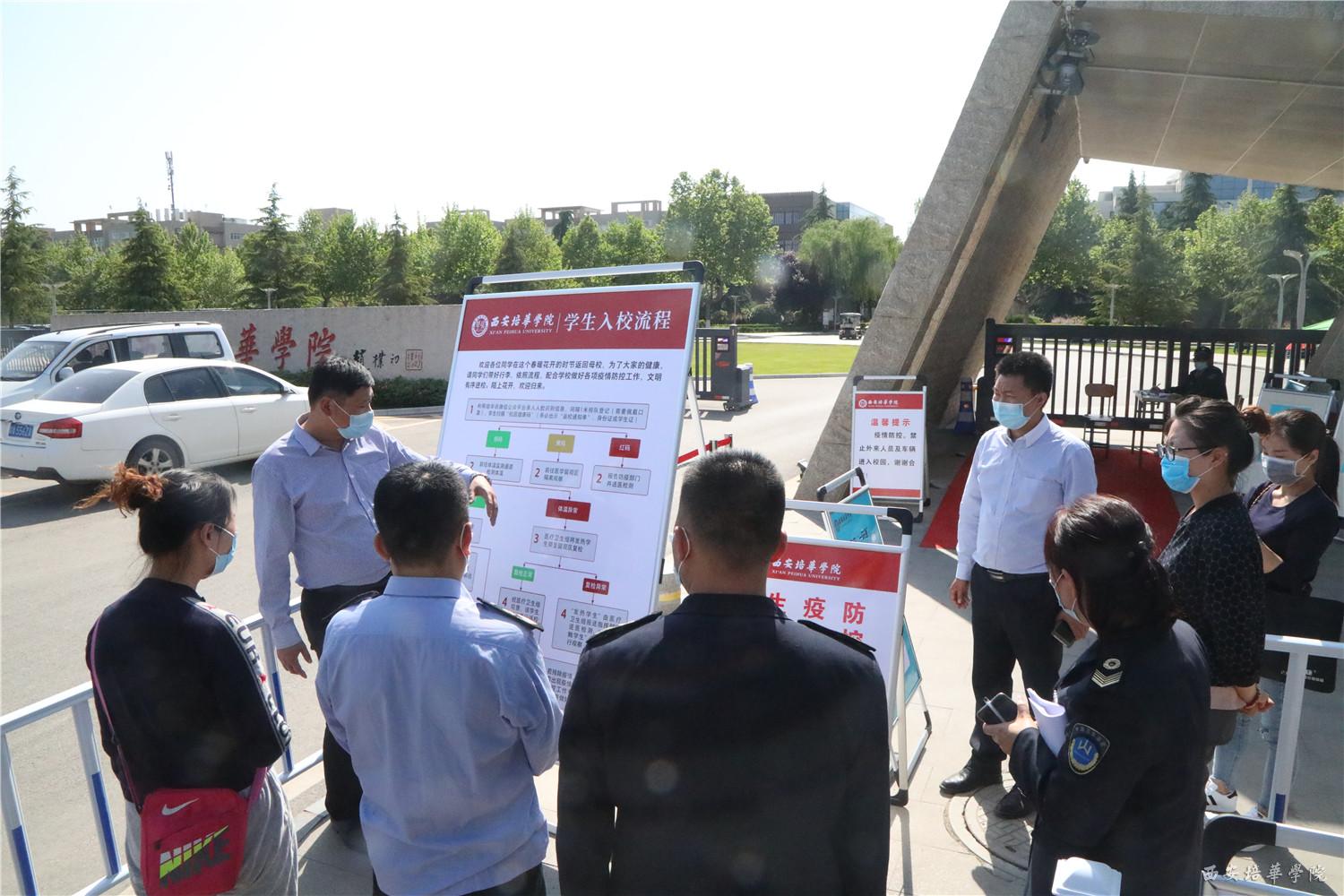 4月24日下午,长安区疾控中心传控科胡霄红科长以及长安区卫生监督所、区高校协调办相关同志一行8人来校实地检查春季开学准备工作。校长李映方,党委书记、副校长姚文静及相关部门负责人陪同检查。