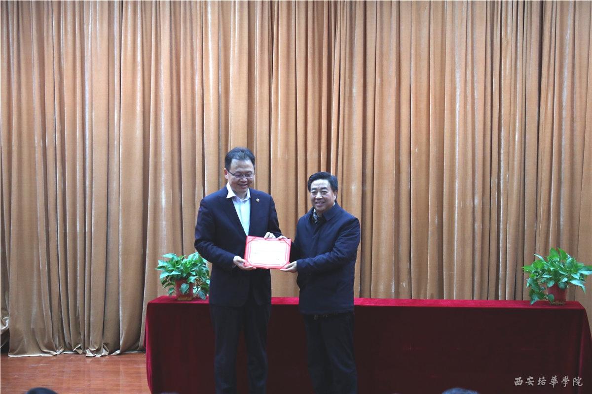 西安培华学院理事长向张洪斌颁发客座教授聘书