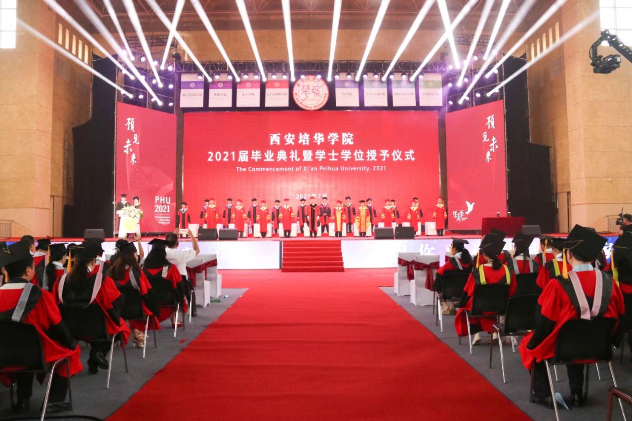 来时青春年少,去时繁花似锦。7月10日上午,西安培华学院在体育馆举行2021届毕业典礼暨学位授予仪式。全体校级领导、学位委员会委员、全体中层领导、教师代表、辅导员代表、毕业生家长代表、校友代表、2021届毕业生代表三千余人参加。