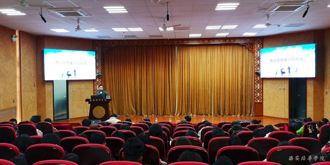 11月27日,国家一级导演、陕西省舞蹈家协会主席、陕西省歌舞剧院原党委书记王宏老师莅临西安培华学院国学大讲堂,为我校热爱舞蹈艺术的师生带来了一场“舞蹈是我最好的叙说”专题讲座。此次讲座是艺术教育中心举办的名家艺术讲坛之一。二级学院近两百名师生参加了本次活动。讲座由艺术教育中心主任刘荣弟教授主持。