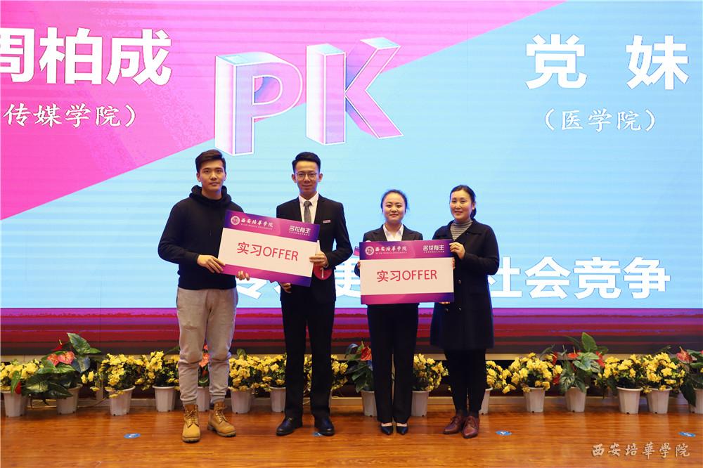 来自陕西中易联信息科技有限公司人力资源总监张珍珠认为有扎实的专业技术能力、较强的沟通能力、有敬业精神和职业素质、有团队精神和协作能力的人一定会收获一份好的工作,恰恰培华的学生,在这些方面表现很出色。西安新东方学校招聘经理张丹竹说道,我校的王牌活动举办的非常出彩,每年都在创新,今年增加了辩论环节,让选手们更充分的展示了自己。感谢学校给企业提供这样和学生接触的机会,让企业收获优秀毕业生。