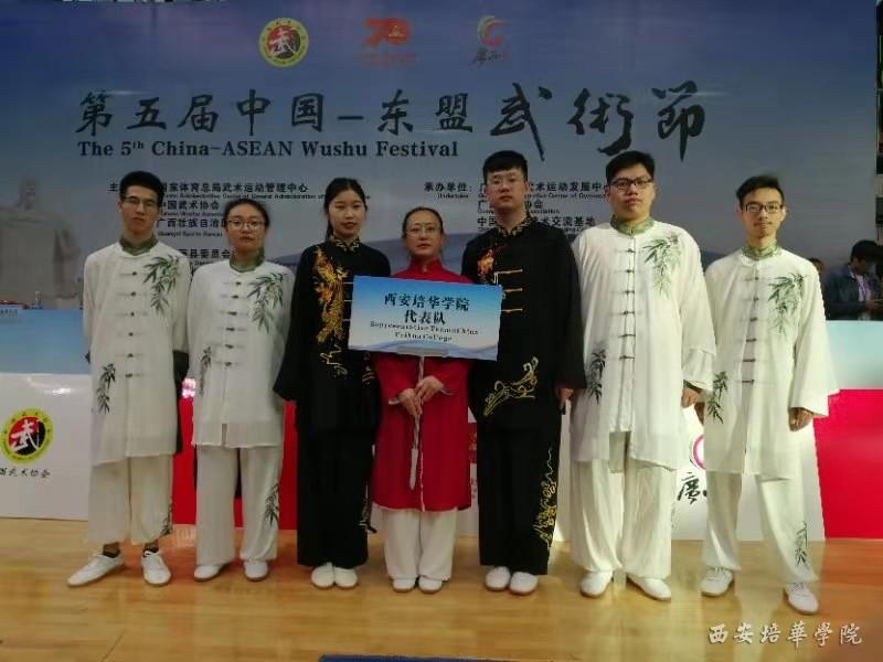 11月10日上午,由国家体育总局武术运动管理中心、中国武术协会、广西壮族自治区体育局主办的第五届中国-东盟武术节在广西梧州市藤县体育馆隆重开幕。本届武术节共有来自越南、文莱、老挝、新加坡、柬埔寨、马来西亚、印度尼西亚、缅甸8个东盟国家,以及中国国内和中国香港、澳门特别行政区的86支代表队参加,参赛人数近千余人,由黄慧老师带领的西安培华学院太极拳代表队共六名运动员参加了本次比赛。