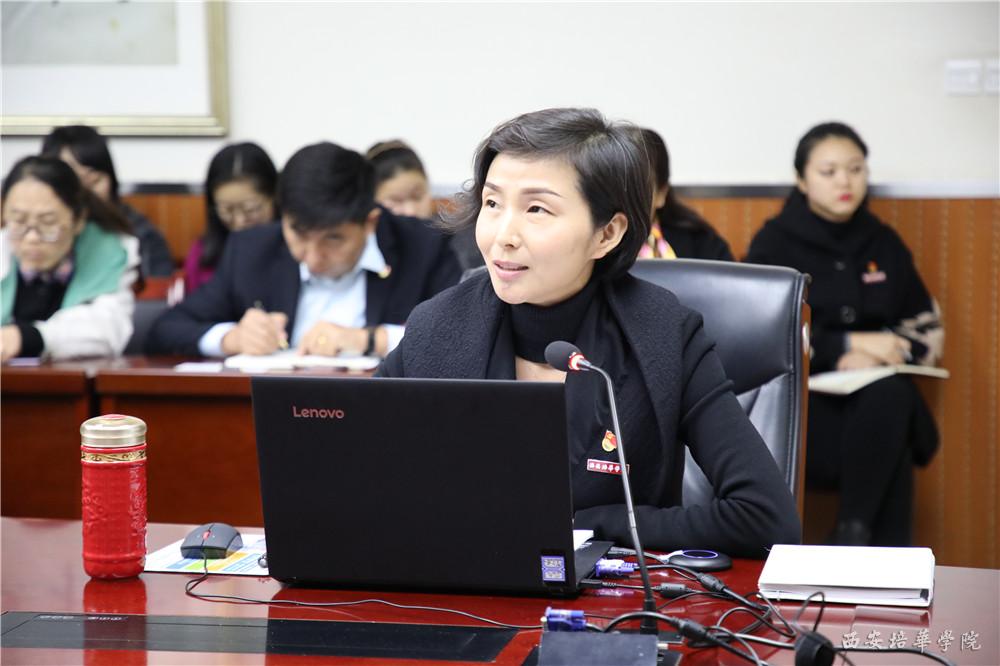 11月1日,西安培华学院党委副书记、副校长姚文静在明德楼第一会议室讲“不忘初心、牢记使命”专题党课--《交党费这件事》。各学院党委书记、副书记,党总支书记、党务干事及全体党支部书记70余人参加了学习。