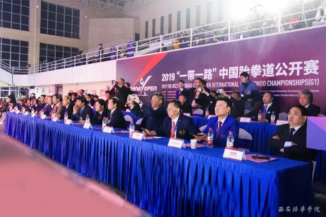 11月7日, 2019“一带一路”中国跆拳道公开赛在陕西省西安市培华学院体育馆进行。本次赛事由中国跆拳道协会、陕西省体育局、西安市人民政府等单位主办。中国跆拳道协会主席管健民、陕西省体育局局长王勇、西安市人民政府副市长强晓安、世界跆拳道联盟技术发展委员会主席杨镇芳、西安培华学院监事会主席、党委副书记徐国富教授等领导出席了上午的开幕式。