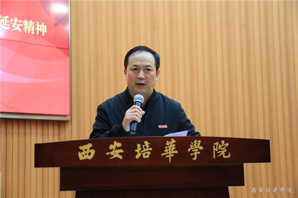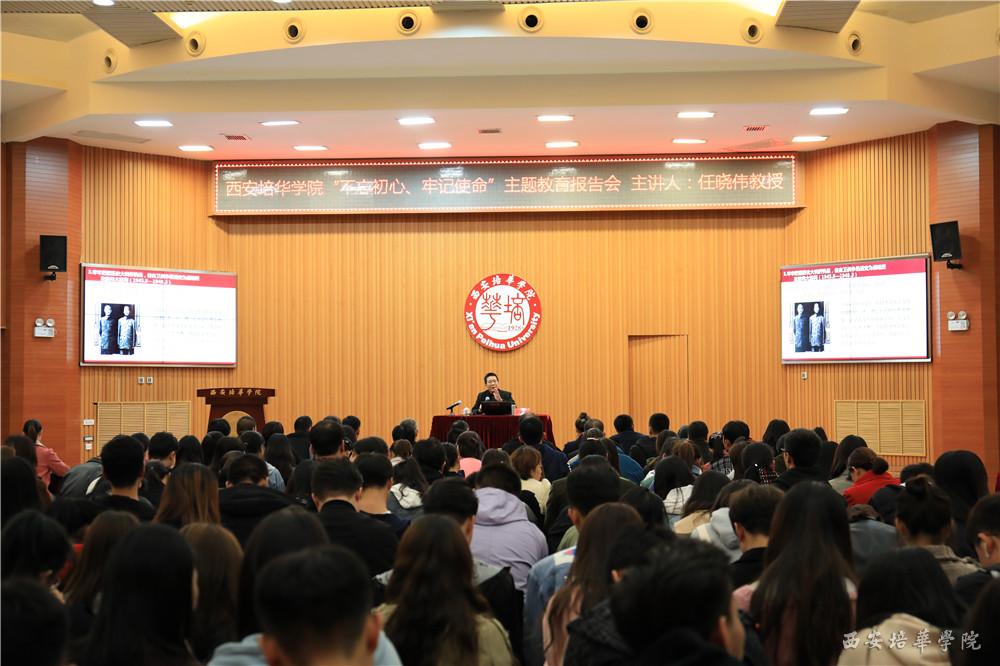 10月25日,西安培华学院“不忘初心、牢记使命”主题教育报告会在明德楼报告厅召开,邀请到陕西师范大学副校长任晓伟教授来校作“党在延安十三年、延安精神及党的初心使命”专题报告。党委书记胡俊生,党委副书记姚文静、徐国富,校党委委员,各二级学院党委书记、副书记,党总支书记,直属党支部书记,党务干事及400多名师生党员代表参加了报告会,校党委书记胡俊生主持了会议。
