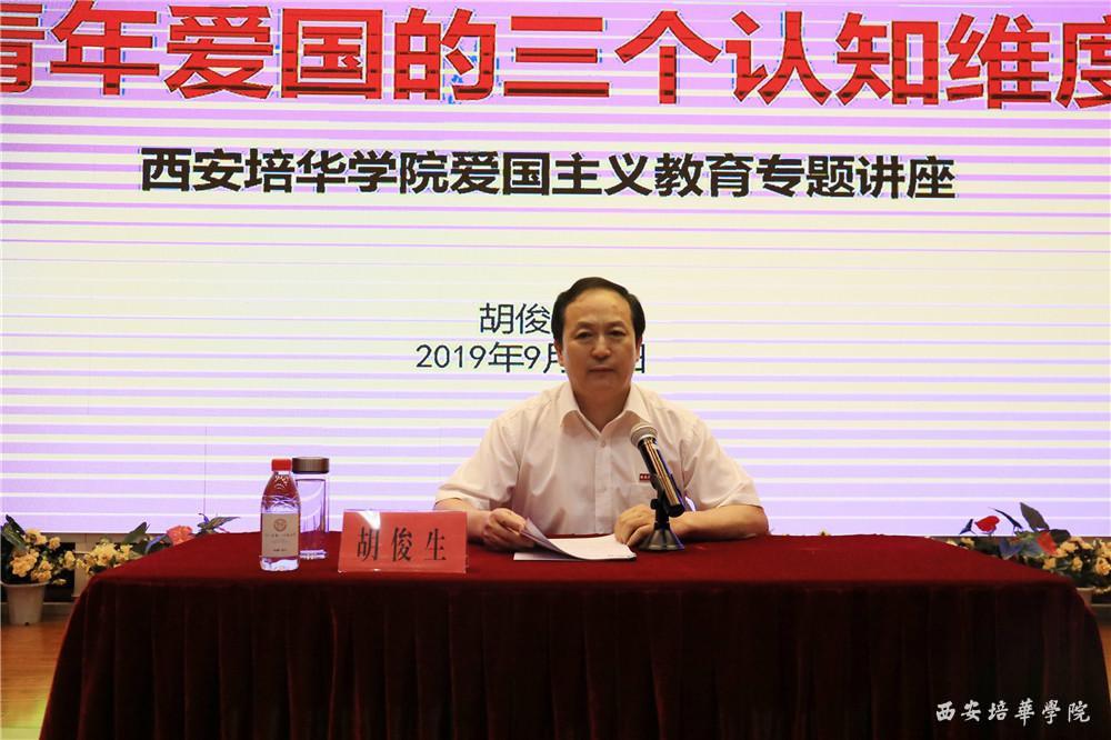 9月27日下午,学校党委书记胡俊生在维之图书馆报告厅为2019级新生进行爱国主义教育专题讲座,胡俊生书记从爱国认知的理性维度、情感维度和角色维度三个部分详细分析“青年爱国的三个认知维度”。