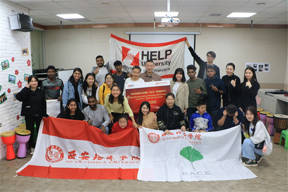 10月11日,“我们在路上”西安培华学院与马来西亚精英大学的交流活动继续进行。当天,两校教师及学生代表共同走进西安市碑林区“拉拉手”特殊教育中心看望慰问自闭症儿童及智力障碍青少年,参观特殊教育中心、与来自“星星的孩子”互动游戏、共同体验音乐课堂。