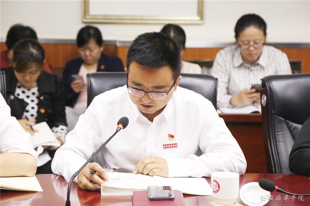 9月25日,西安培华学院在第一会议室召开“不忘初心、牢记使命”主题教育培训会,党委委员,二级学院党委、党总支书记,党务干事及全体党支部书记参加了会议。会议由党委书记胡俊生主持。