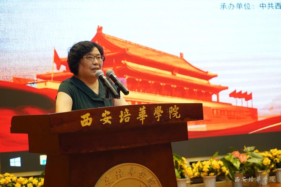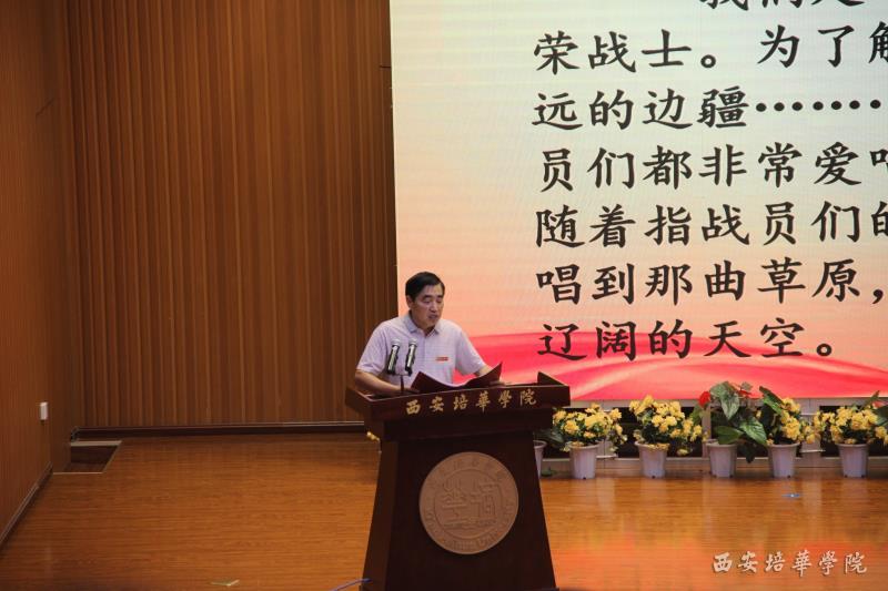 陕西省政协常委、致公党陕西省委员会副主委、西安培华学院理事长姜波致辞。他讲到,杨虎城将军夫人谢葆真女士、邵力子先生和傅学文女士等一大批革命先烈曾为培华捐资办学,培华不负众望,一步一步成长至今。培华有着深厚的红色文化情结,党的十九大报告指出:“不忘初心,方得始终”,为了深刻学习十九大精神,学校通过开展不同形式不同主题的爱国主义教育活动,以加强学生的爱国教育,深化学生的爱国情怀,营造健康高雅的校园文化氛围。他希望通过本次活动,让同学们深入了解伟大民族英雄杨虎城将军,深刻学习杨虎城将军为中华民族的解放事业做出的不朽功绩,并以此激励同学们用实际行动来继承先辈遗志,奋发图强。