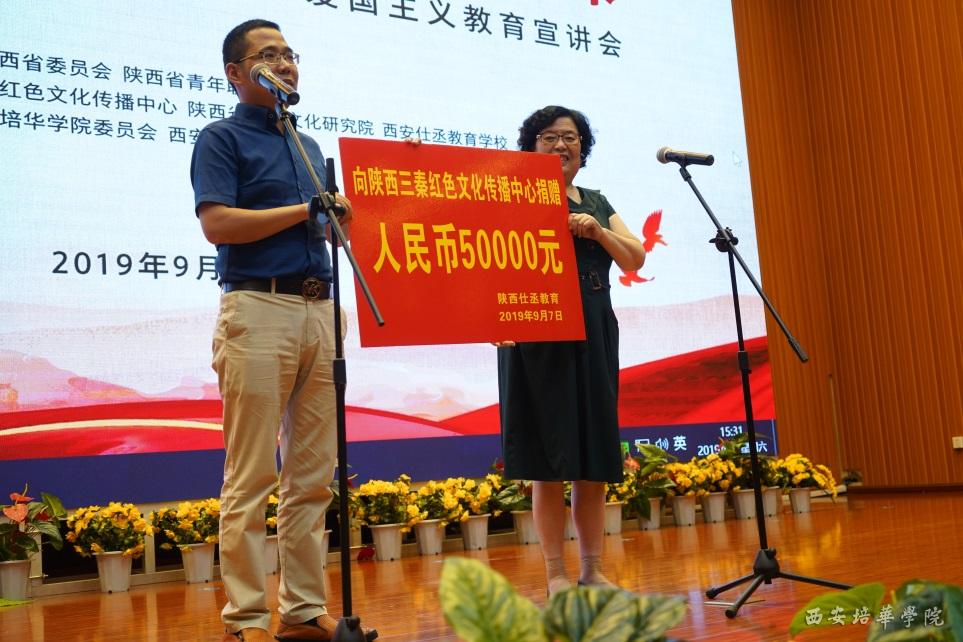 西安仕丞教育学校向陕西三秦红色文化传播中心捐赠公益基金