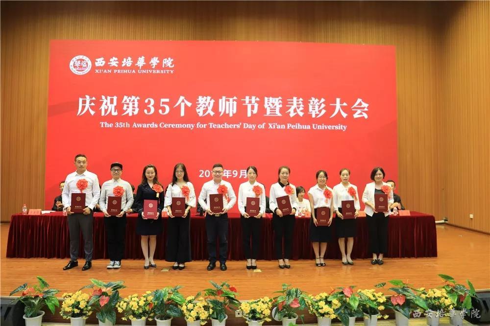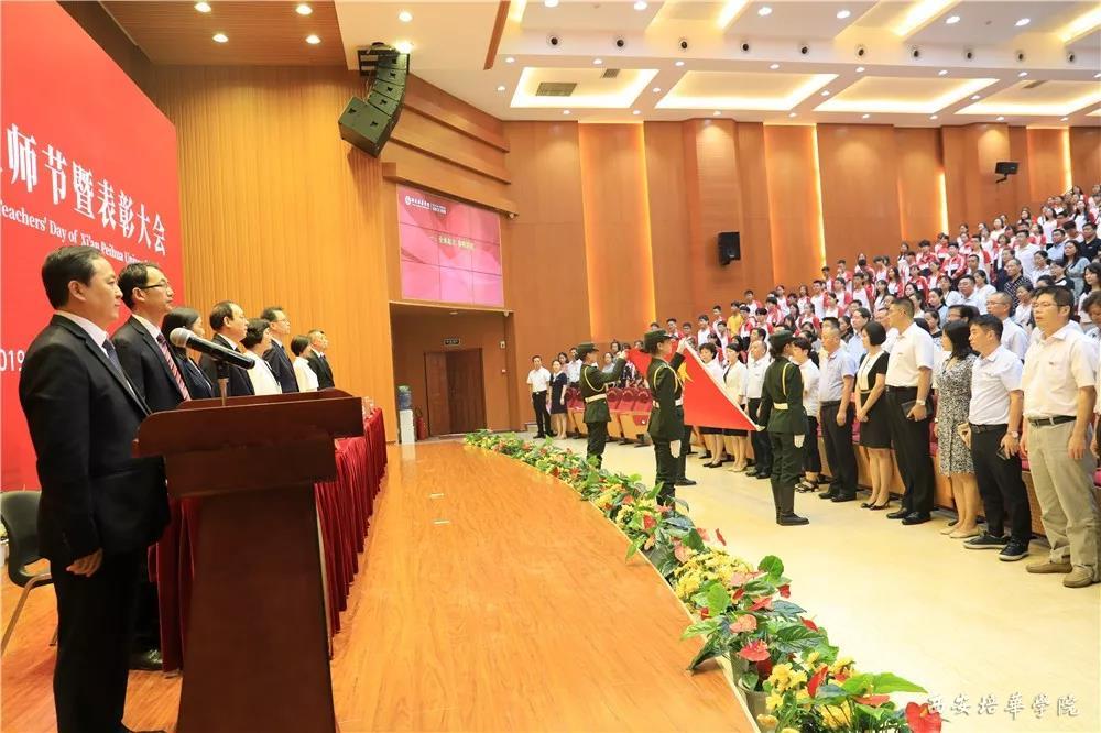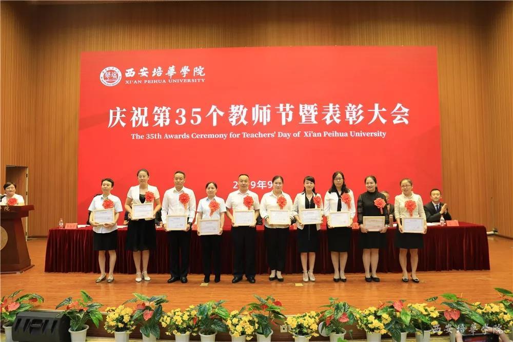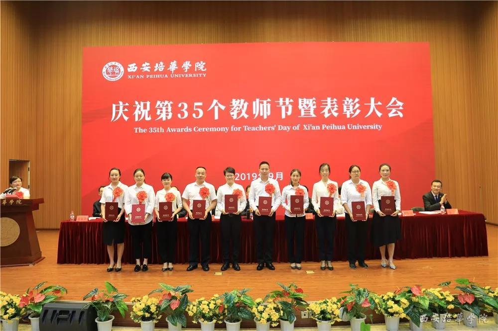 9月9日下午,西安培华学院在位置图书馆报告厅举行2019年庆祝教师节暨表彰大会。全体校级领导,各院(部)、中心负责人、教师代表、辅导员代表、新生代表共500余人参加了会议。会议由学校党委书记胡俊生主持。