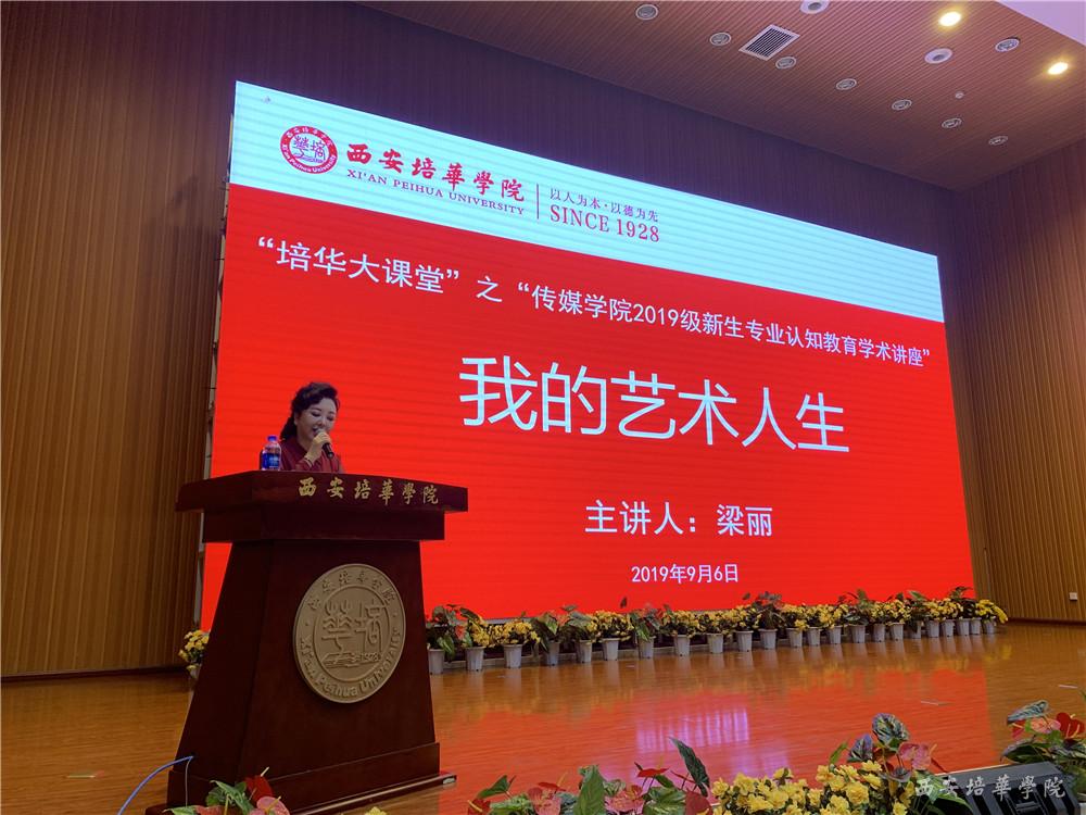 为2019级新生能够更具体切实的认知专业学习和职业发展,西安培华学院传媒学院在新生入学教育中,邀请知名演员梁丽为戏剧影视文学专业、广播电视编导专业、播音与主持艺术专业2019级新生做“我的艺术人生”专题讲座。9月6日,讲座在图书馆报告厅举行,传媒学院院长杜耀峰到场介绍讲座嘉宾,教学副院长赵伟主持整场讲座。