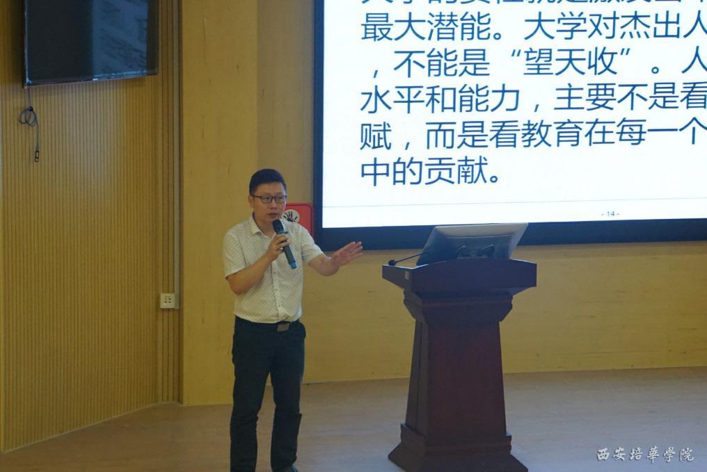 随后,西安培华学院智能科学与信息工程学院副教授、教务管理中心副主任张伟老师以“应用型课程体系与教学模式改革”为题做了时长约3小时的报告,系统阐述了高校转型发展与应用型课程改革在理念、模式、方法、技术上的理论研究与运作模式改革,分享了培华在专业人才培养方案设计、课程体系改革、应用型课程改革、教学模式与教学方法探索等方面的成功举措与建设成效。