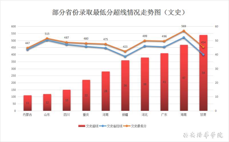 西安培华学院2019年共计招生6587人,共46个专业,其中外省计划2066人,向包括陕西省在内的26个省市招生。数据显示,在已经结束的招生录取省份中,西安培华学院录取分数线全线飘红。在陕西省本科二批次录取工作中,西安培华学院在陕民办高校本科的文、理科录取分数线均居首位:普通文科最高分494分、最低 435分,其中最低分比2018年上升了4224个位次;普通理科最高分 455分、最低399分,比2018年上升了 8825 个位次。在陕西省普通类专科批次录取二本线上考生177人,文史类录取分数线超过省控线201分,理工类录取分数线超过省控线169分:普通文科最高分487分、最低 351 分,其中最低分比2018年上升了13945个位次;普通理科最高分448分、最低319分,比2018年上升了20180个位次。