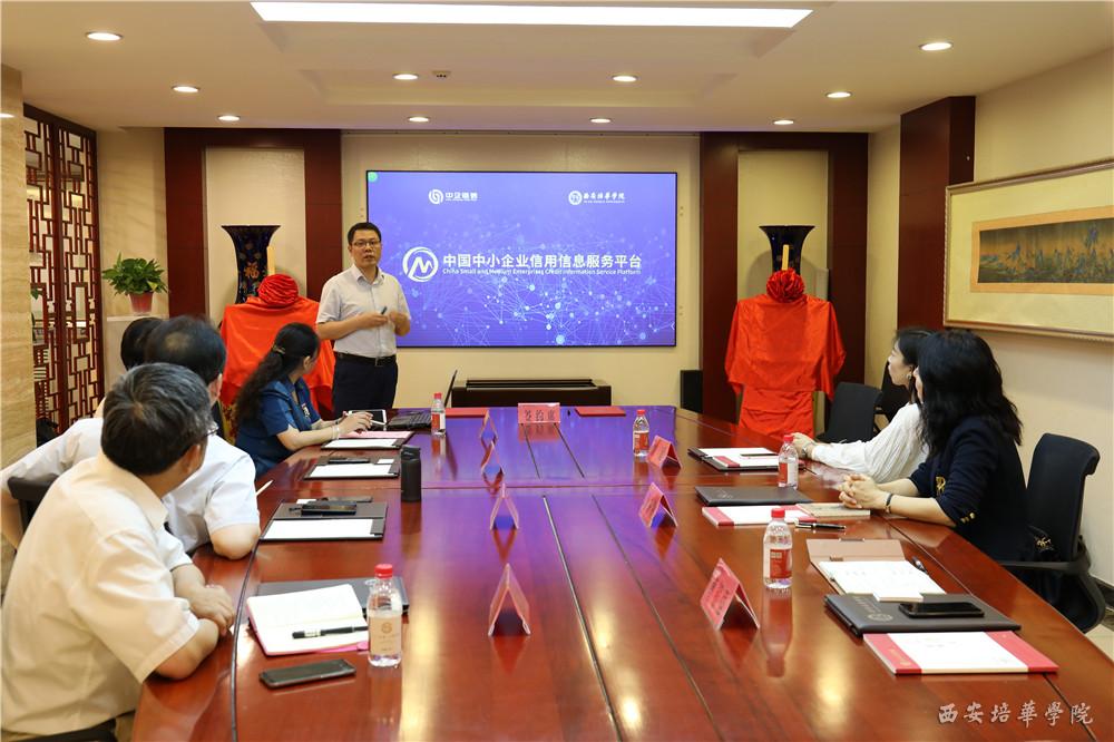 6月28日,西安培华学院与中国中小企业信用信息服务平台战略合作签约仪式在明德楼五楼会议室举行,中国中小企业协会副会长姜海欧,中国中小企业信用管理中心执行主任曹银强,西安培华学院理事长姜波、校长助理秦海锋、会计与金融学院院长赵选民等出席仪式。仪式由西安培华学院会计与金融学院副院长孙文琳主持。