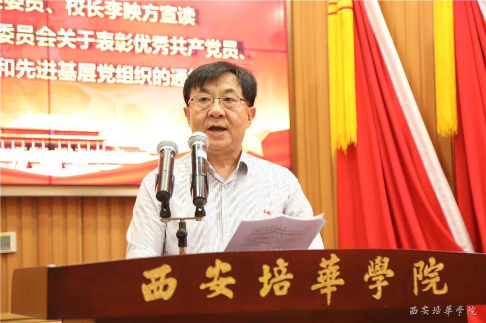 七月一日,西安培华学院隆重召开庆祝中国共产党建党98周年暨“七一”表彰大会。西安培华学院理事长姜波,校党委书记胡俊生,校长李映方,党委副书记、副校长姚文静、教职工党员代表及部分学生党员代表参加了表彰大会。会议由党委副书记、副校长徐国富主持。