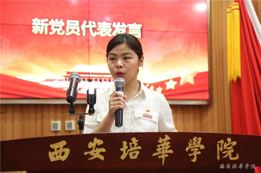 新党员代表,医学院教师白宏发言,她表示,作为一名新党员,今后,还要继续在党组织的帮助下,严格要求自己,刻苦钻研业务,争取以更加高超的教育艺术激发学生的学习热情,为社会主义教育事业奉献青春力量。