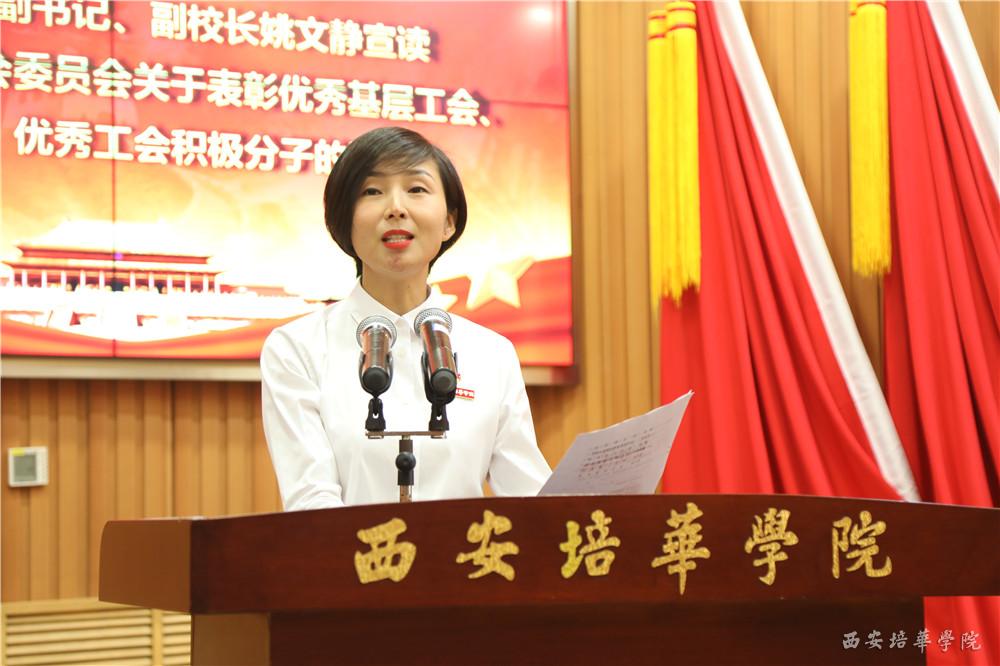 校长李映方,党委副书记、副校长姚文静宣读了表彰决定。大会表彰了2019年优秀共产党员、优秀党务工作者、先进基层党组织;优秀基层工会、优秀工会干部、优秀工会积极分子等5个先进集体,45个先进个人。