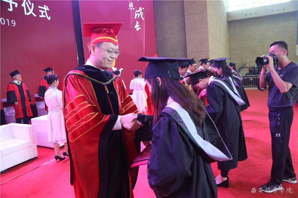 全场瞩目,理事长姜波博士迎来学术权杖;副校长于国亮宣读《西安培华学院关于2019届全日制普通本专科学生毕业(结业)的决定》;学位委员会主席、副校长刘越莲宣读《西安培华学院关于2019届普通高等教育本科毕业生授予学士学位的决定》。