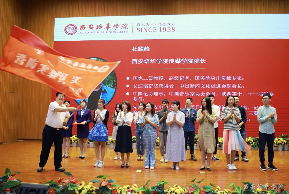 传媒学院院长杜耀峰为“美国游学-培华传媒实训营”团队授旗