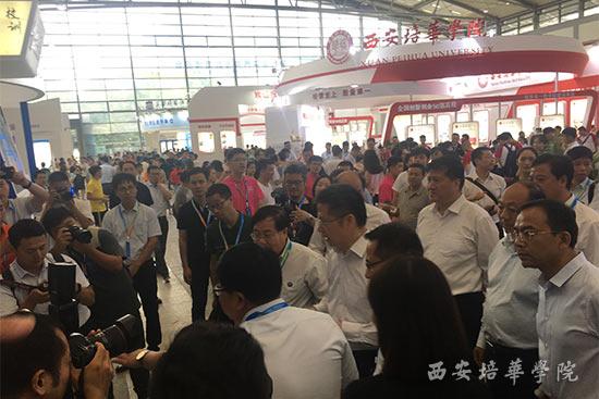 西安培华学院作为本科二批次招生对象参加了展览会,陕西省副省长方光华,省政府副秘书长高阳,陕西省委教育工委书记董小龙,陕西省教育厅厅长王建利,副厅长刘建林等领导到场莅临培华展位参观指导。