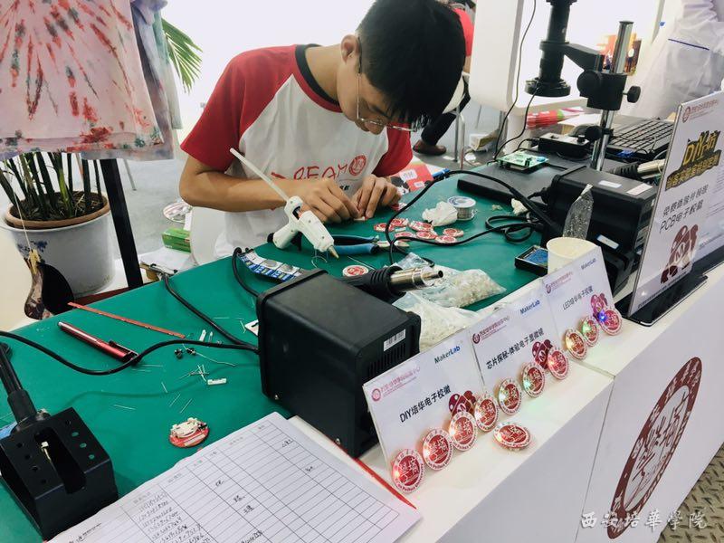 除此之外,培华创客团队带来的专业认知体验项目更是吸引了众多参观者的眼球,DIY食药级中性洗手液、DIY激光雕刻定制钥匙扣、DIY七彩LED电子培华校徽等小发明无不令参观者驻足品咂。
