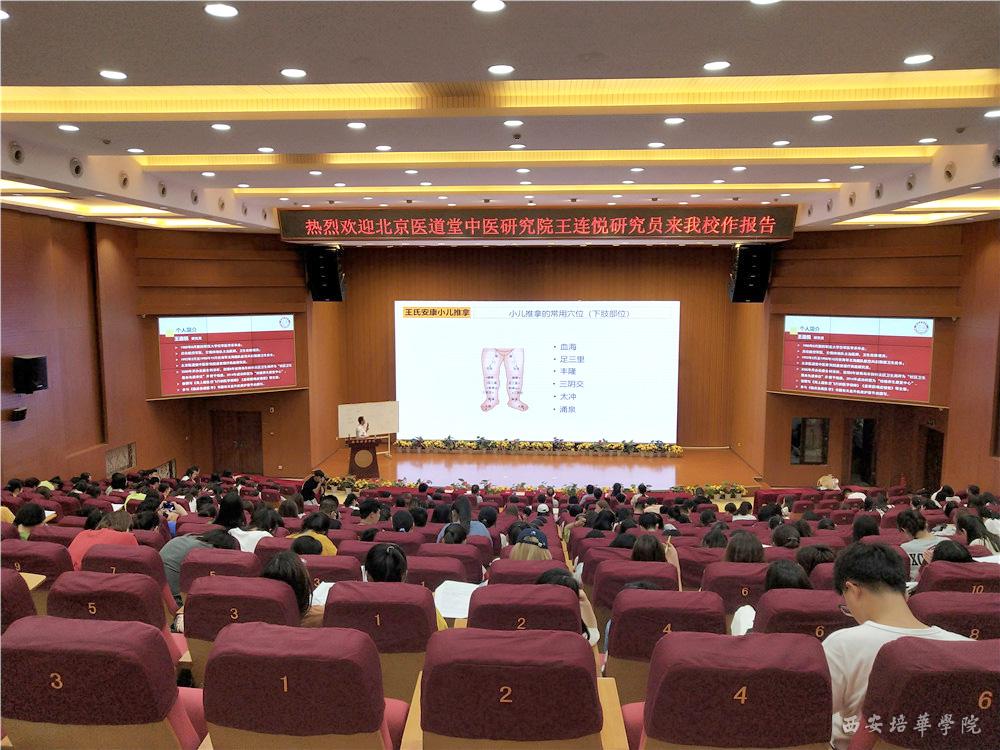 讲座开始,王医生首先分享了两个案例,一例是他接诊的一位56岁心衰合并肾衰的患者通过经络养生调理并受到良好效果,一例是得了怪病的加拿大女孩在加拿大中西医治疗无果后,经王医生推拿后双手颤动症状明显改善,通过案例激发广大师生弘扬中医文化的兴趣。之后,王医生重点介绍了推拿,推拿是中医最传统的一种治疗手法,不以药物为基础,仅仅通过医生的两只手,通过作用于小儿身上的推、拿、揉等一系列动作,为小儿除病解忧的方法,该办法不借助于任何药物,易学易会见效快,并且对小儿身体没有任何伤害,适合于生活中日常对小儿出现身体不适的调养。他主要从手法、阴阳、频率、时间、手位和禁忌等六个方面介绍了小儿推拿的要点,并指出,推拿能够治疗小儿所患的95%以上的病症,包括:小儿感冒,流涕,咳嗽,发烧,厌食,呕吐,腹泻,腹痛,便秘等症状。