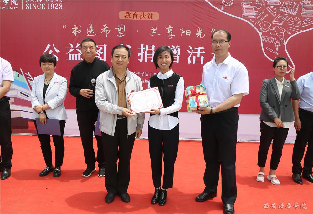 姚文静副校长将自己整理出的十多本图书进行了捐赠,由工会副主席马德厚代表校工会接受赠予,胡俊生书记为姚校长颁发了捐赠证书。