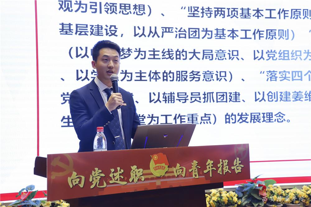 建筑与艺术设计学院团委书记段超从“共青团思想引领、基层组织建设、社会实践与志愿服务体系建设、校园文化建设”等五个方面梳理了学院共青团工作,最后以“恪守青年政治职责、树立大抓基层导向、服务中心工作主线、发挥学院专业特色”四个方面,为学院共青团接续发力再上新台阶提出新目标。