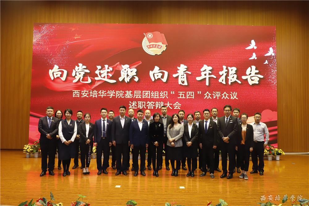 为落实团中央关于“全面大抓基层”重要导向,加强和规范基层团组织建设,构建全面立体科学评价机制,调动和发挥青年积极性,不断增强团组织的吸引力、凝聚力和战斗力。西安培华学院2019年共青团“向党述职·向青年报告”众评众议述职答辩大会于5月6日在维之图书馆报告厅隆重举行。校党委副书记、副校长姚文静,校党委委员、党委工作部部长陈玲,党委宣传部部长、新闻中心主任柳雨,思政课教学部简爱副教授,校团委书记、学生服务中心副主任蔡亮,学生服务中心副主任张静远及校团委、二级学院有关负责同志出席本次大会,同时出席大会的还有大众评审、团学青组织代表,共计400余人。