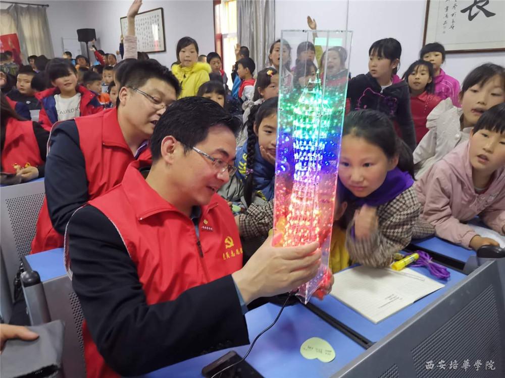 4月12日下午,学校智能科学与信息工程学院党总支教工党员志愿服务队走进五台街道中心学校开展以“普及科技知识,智‘绘’科技梦想”为主题的“七个一”教育实践活动。此次活动由智能科学与信息工程学院党总支书记兼行政副院长南兵带队,院教工党员志愿服务队全体老师参加。五台街道中心学校校长骆小平、副校长赵波、五台街道中心农机校校长王民康、五台街道西街社区主任周彩红等出席了本次活动。