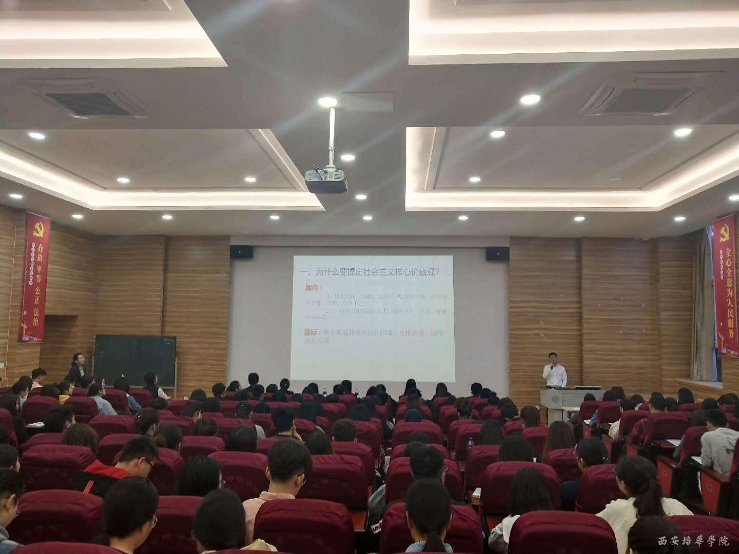 为了进一步加强社会主义核心价值观建设,增强新时代大学生的责任意识和使命意识。4月16日下午,西安培华学院党委宣传部邀请到西安市委宣传部马旭周老师开展题为“市民大讲堂,社会主义核心价值观进校园”的主题报告会。报告会在中共西安培华学院委员会党校教室J101举行,我校医学院200余名党员积极分子、各团支部书记参加了此次报告会。