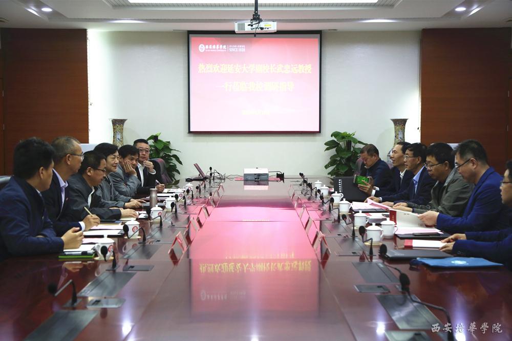 4月23日上午,延安大学副校长武忠远,科研处处长杨亮才,延安大学西安创新学院院长崔海潮,教务处副处长党子奇一行来校考察调研,学校副校长刘越莲、科研管理中心、教务管理中心、产学研协同中心等负责同志陪同调研。