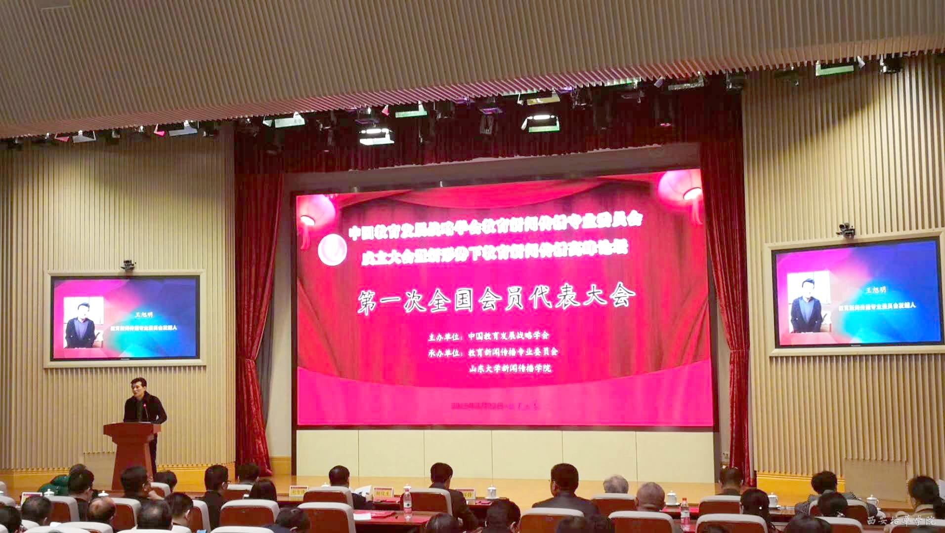 会上,教育部原新闻发言人王旭明当选为理事长,西安培华学院当选为常务理事单位,学校党委书记胡俊生当选为中国教育发展战略学会教育新闻传播专业委员会副理事长,学校副校长、党委副书记姚文静,传媒学院副院长赵伟当选为常务理事,学校党委宣传部长柳雨、传媒学院网络与新媒体专业带头人杜萍为理事。