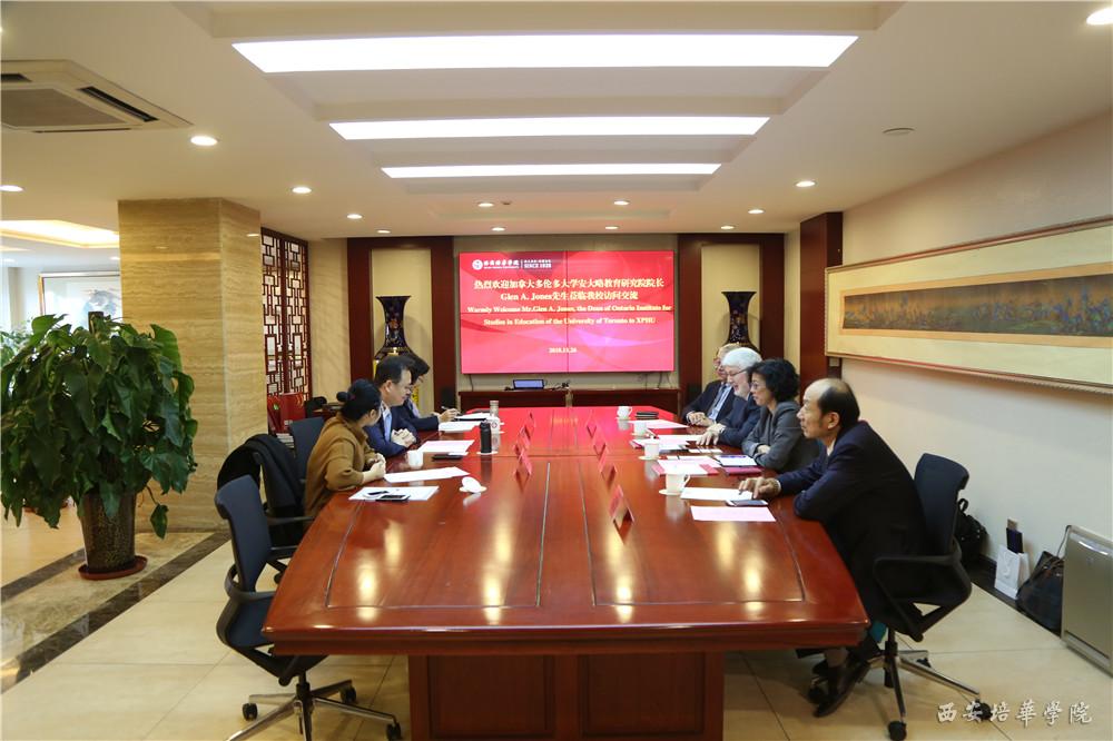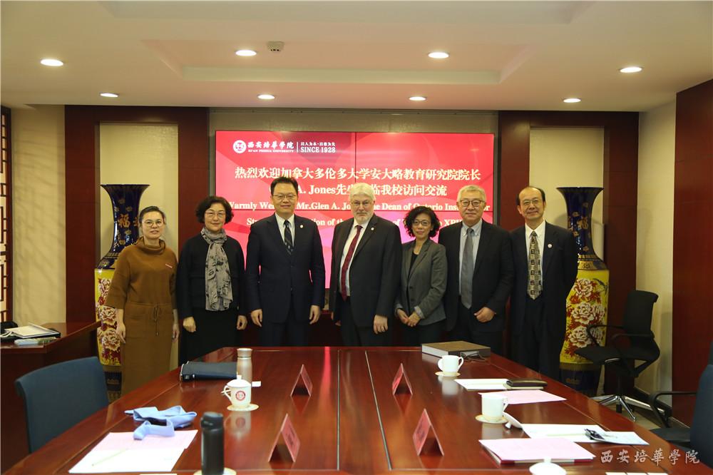 11月26日,加拿大多伦多大学安大略教育研究院院长Glen A. Jones、院副院长Liuhong Huang,中国国际教育电视台台长李世强、副台长陈联胜一行到我校交流访问。我校姜波理事长、刘越莲副校长、国际交流中心主任王鹏亲切接待了来宾一行。